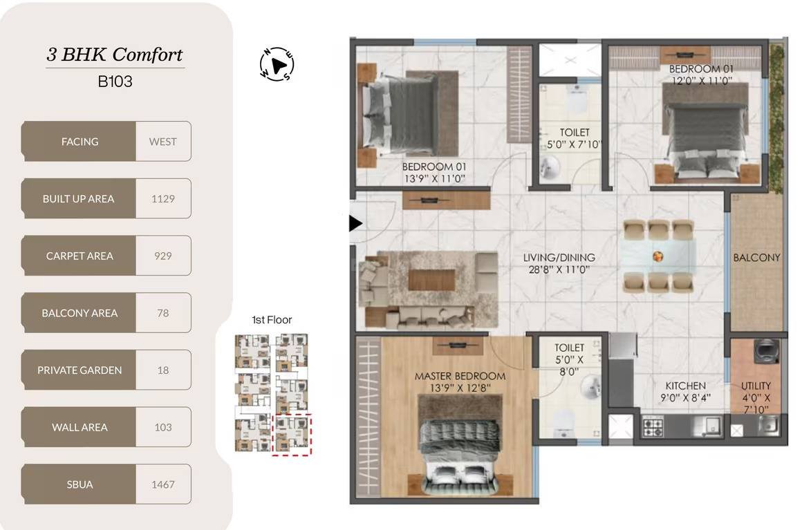 | 3 BHK Comfort (East Facing) | 1457–1586 Sqft | |